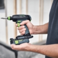System szybkiej wymiany CENTROTEC, nasadka kątowa i mimośrodowa oraz ogranicznik głębokości zapewniają szybsze wiercenie i wkręcanie. Dzięki praktycznej funkcji zapamiętywania pozycji przełącznika, ustawiony moment obrotowy jest zachowywany również przy przełączaniu z wiercenia na wkręcanie. Bezszczotkowy i bezawaryjny silnik EC-TEC umożliwia dłuższą pracę po jednym naładowaniu akumulatora, gdyż przy wkręcaniu pobiera tylko tyle mocy, ile wymaga dane zastosowanie. Idealna w połączeniu z akumulatorem Li-HighPower Compact, który zapewnia stale wysoką moc, a przy tym waży zaledwie 600 gramów. Oczywiście akumulatorowa wkrętarka i akumulator są kompleksowo zabezpieczone usługami Festool Serwis.