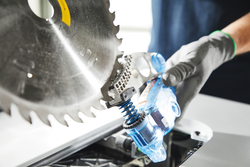 Każdego roku pilarki tarczowe powodują ok. 4000 urazów, co odpowiada 16 skaleczeniom na dzień pracy. Około 26% poważnych wypadków prowadzi do otrzymywania renty (statystyka DGUV „Wypadki przy pracy 2017”). Dzięki stolikowej pilarce tarczowej TKS 80 ryzyko najcięższych skaleczeń podczas cięcia zostaje zredukowane. w przypadku kontaktu ze skórą aktywowany jest wkład, który za pomocą sprężyny przemieszcza aluminiowy blok na tarczę pilarską. Po zwolnieniu wkład można wymienić kilkoma ruchami.