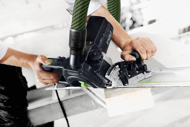 Zarówno drewno, jak i materiały izolacyjne: pilarka mieczowa do cięcia wszystkich standardowych materiałów stosowanych w konstrukcjach drewnianych o grubości do 200 mm, przy zachowaniu najwyższej jakości. Maszyna z gwarancją mobilności: waży 6,5 kg, co stanowi 30% wagi ręcznych pilarek tarczowych dających porównywalną głębokość cięcia. Szyna prowadząca Festool sprawdza się w przypadku przycinania, cięcia wzdłużnego, cięć ukośnych i cięć po linii prostej w drewnie i twardych materiałach izolacyjnych, bez wyrw.