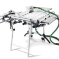 Przykładnica kątowa umożliwia szybką zmianę cięcia podłużnego na poprzeczne. Wymienne tarcze pilarskie FastFix pozwalają na cięcie dopasowane do materiału. Wszystkie ważne elementy obsługi w jednym uchwycie: włącznik/wyłącznik, ustawianie prędkości obrotowej, chwilowe uruchamianie, szybkie włączanie i wyłączanie mechanizmu przesuwu. System zapewniający większą szerokość, długość i wielkość. Możliwość odsysania dla zdrowej pracy bez pyłu.