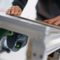 - Wykonywanie cięć prostych za pomocą szyny prowadzącej