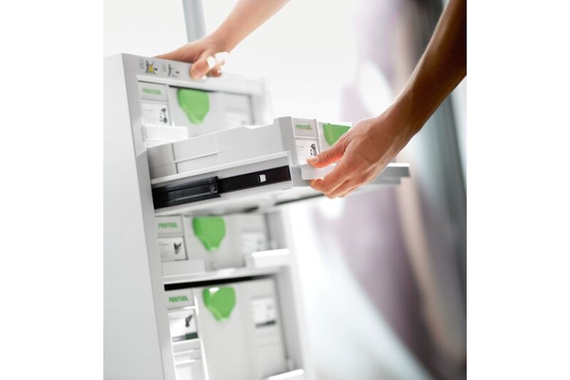 Szafka na Systainery: mobilny system przechowywania wyposażenia. Pomaga pracować ekonomicznie. Dzięki niej wszystkie narzędzia i środki potrzebne do wykonania danych operacji roboczych mogą szybko znaleźć się na stanowisku pracy. Pozwala to pracować szybko i efektywnie. Koniec z czasochłonnym szukaniem poszczególnych części.