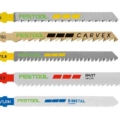 - Dzięki oznaczeniu kolorystycznemu Festool można szybko znaleźć właściwą tarczę pilarską: kolor żółty oznacza obróbkę drewna, kolor czerwony obróbkę tworzywa sztucznego, a kolor niebieski pracę z metalem