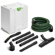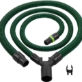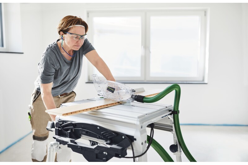 - Łatwe odsysanie: zestaw do odsysania łączy oba miejsca wydostawania się pyłu i wiórów (osłona i maszyna) z jednym odkurzaczem mobilnym.