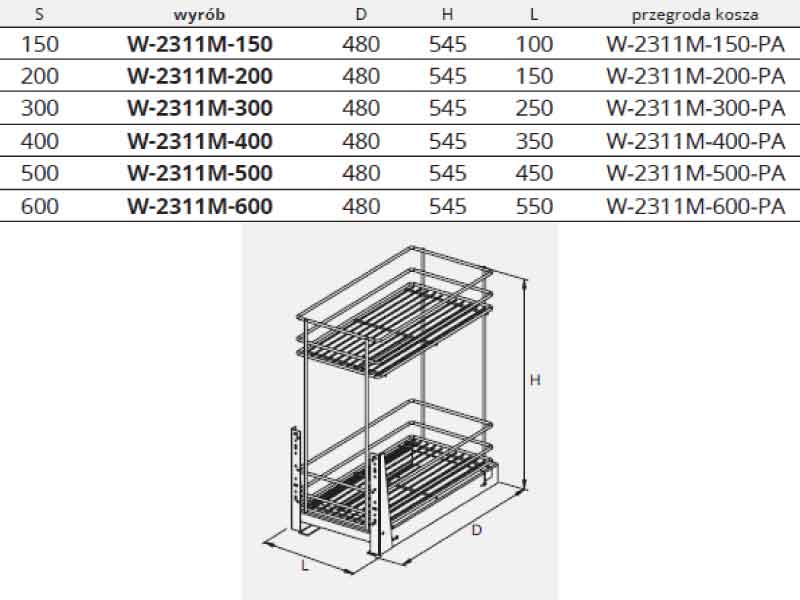 Kosz cargo Nomet W-2311M to idealne rozwiązanie do organizacji przestrzeni w kuchni. Dzięki dolnemu montażowi prowadnic zapewnia stabilność i wygodne użytkowanie. Dwie półki umożliwiają ergonomiczną segregację produktów, a wysokie przegrody zabezpieczają przed przewróceniem się zawartości.