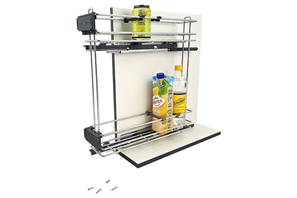 Kosz cargo od FBM to idealne rozwiązanie do szafek o szerokości 15 cm. Kosz został wykonany z solidnego, chromowanego drutu, który zapewnia wysoką odporność na wilgoć i uszkodzenia mechaniczne. Eleganckie wykończenie sprawia, że idealnie komponuje się z nowoczesnymi wnętrzami kuchennymi. Za wygodę użytkowania odpowiadają prowadnice Hettich Quadro z systemem cichego domyku. Dzięki nim kosz wysuwa się płynnie i niemal bezgłośnie, co zwiększa komfort codziennego użytkowania.