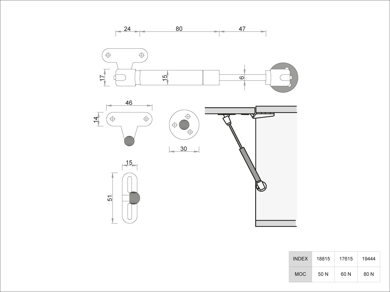 - Podnośnik gazowy ATM PG-015 80N – 1 sztuka