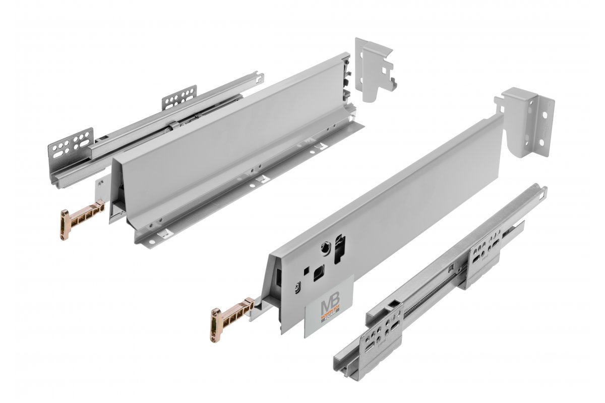 Szuflada dostępna jest w trzech wysokościach: 83, 146 i 210 mm, co pozwala na jej idealne dopasowanie do różnych potrzeb użytkownika. Mechanizm cichego domyku zapewnia płynne i bezgłośne zamykanie, a synchronizacja toru jazdy prowadnic dodatkowo podnosi kulturę pracy i komfort użytkowania.