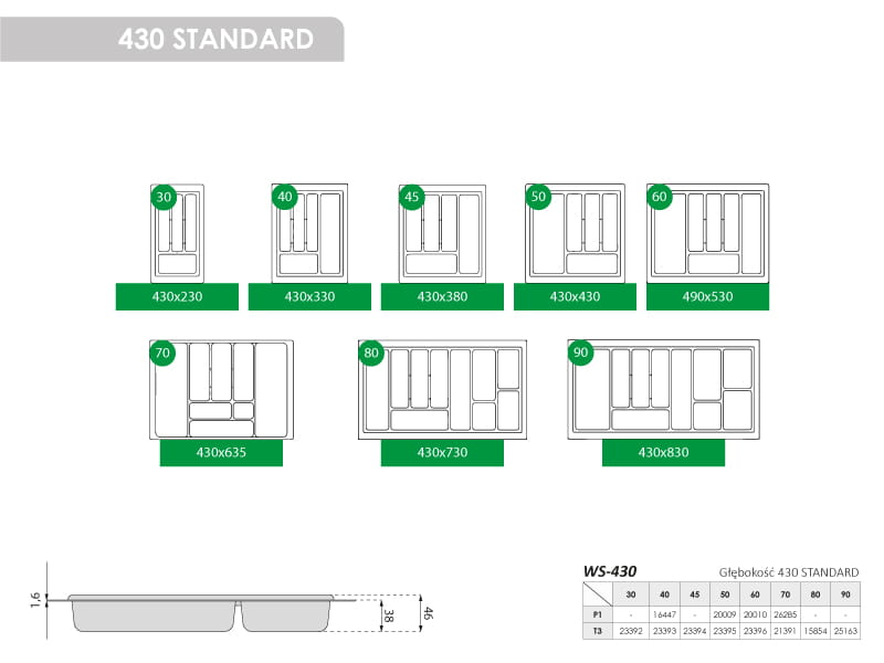Wkład WS-430 marki ATM to praktyczne rozwiązanie, które pomoże Ci uporządkować sztućce i akcesoria kuchenne. Dzięki przemyślanemu układowi przegródek utrzymanie porządku w szufladzie staje się proste i wygodne.