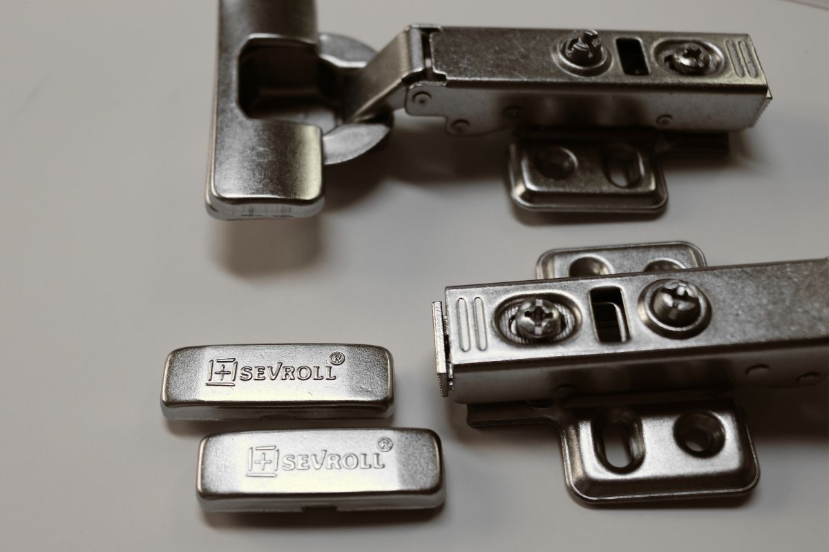 Zawiasy firmy Sevroll to pewne rozwiązanie do mocowania drzwi! Dzięki zastosowaniu cichego domyku podnosimy komfort użytkowania mebli. Drzwi nie wymagają już konieczności asekuracji przed głośnym trzaskiem. Wysoka jakość wykonania a także sprawdzone materiały sprawiają, że zawisy wytrzymują aż 80 000 cykli otwórz-zamknij. Zestaw obejmuje: 2 zawiasy, 2 prowadniki na 4 wkręty, komplet zaślepek i wkrętów.