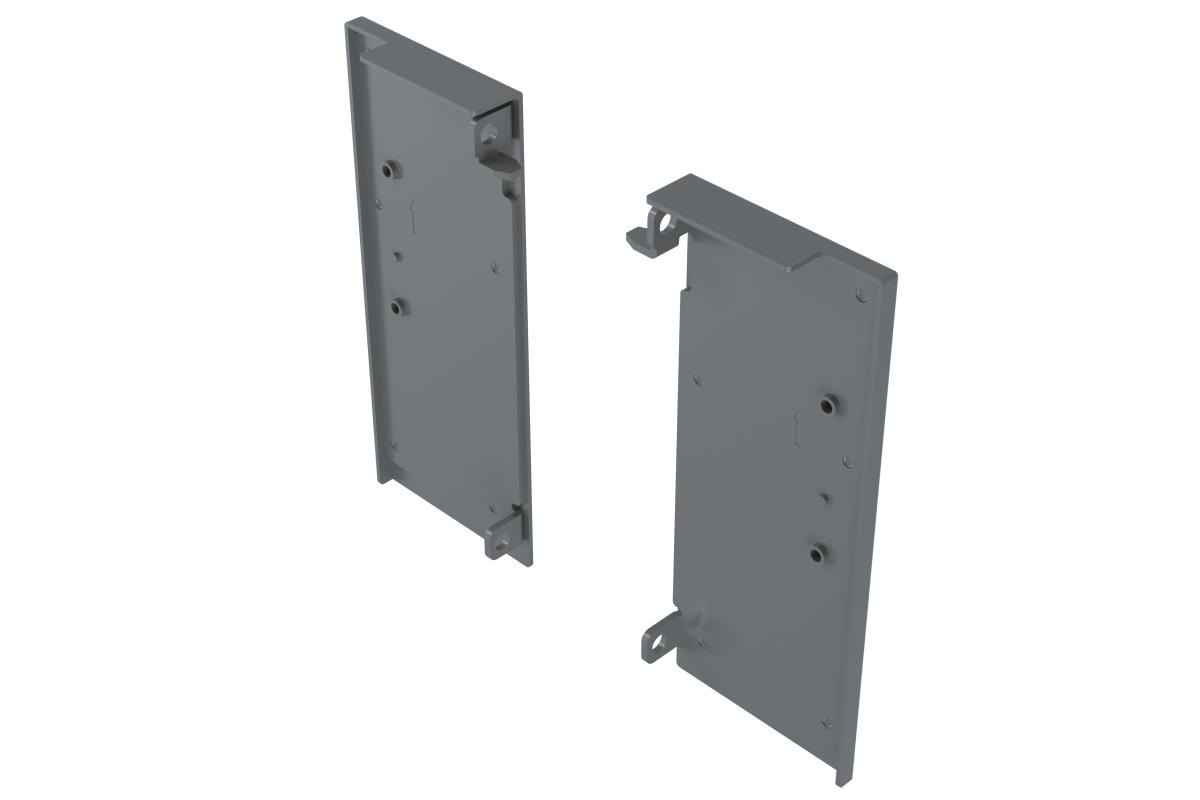 Niska złączka frontu wewnętrznego do systemu Axis Pro, wykonana ze stali i dostępna w dwóch kolorach, przeznaczona do niskich szuflad Axis Pro. Umożliwia montaż wewnętrznej szuflady. Zestaw obejmuje złączki lewą i prawą.
